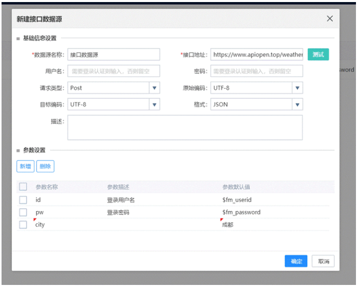 确认接口地址无误之后,点击“确定”按钮,完成新建接口数据源操作。